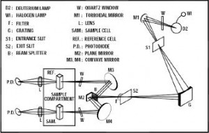 El principio de la espectroscopia ultravioleta-visible involucra la absorción de radiación ultravioleta – visible por una molécula, causando la promoción de un electrón de un estado basal a un estado excitado, liberándose el exceso de energía en forma de calor. La longitud de onda (λ) comprende entre 190 y 800 nm.